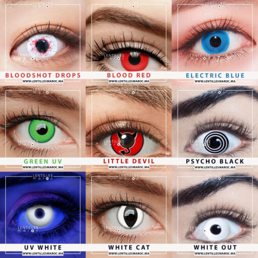Lentilles Maroc vous propose une gamme de lentilles de fantaisie et cosmétiques, lentilles halloween, rouge et blanche.